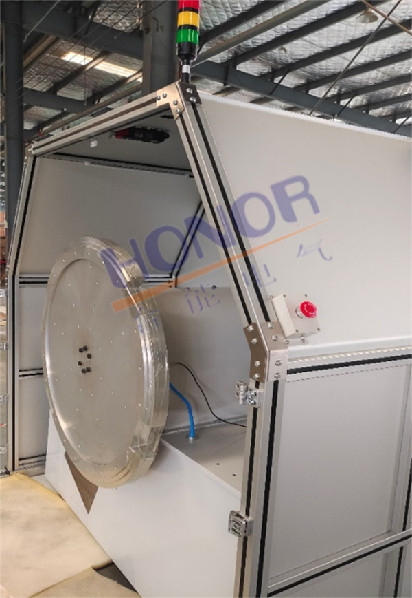 該設(shè)備為電機(jī)連接主軸,在主軸端裝有工作轉(zhuǎn)盤,測(cè)試的CT產(chǎn)品固定到工作轉(zhuǎn)盤上,啟動(dòng)電機(jī),電機(jī)帶動(dòng)主軸旋轉(zhuǎn),在預(yù)定的轉(zhuǎn)速下進(jìn)行產(chǎn)品的各項(xiàng)性能測(cè)試。