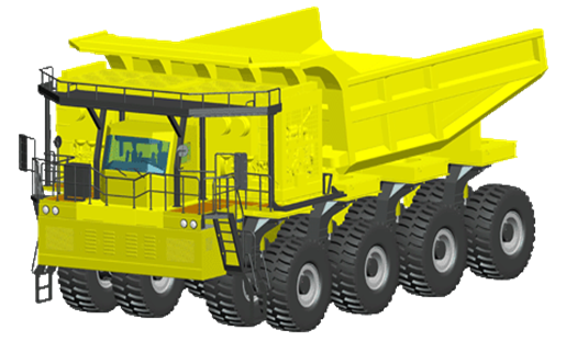 采用合能電驅(qū)動系統(tǒng)的新型節(jié)能多軸重型礦用自卸車,已經(jīng)載重240噸進(jìn)行了2000公里的路面各項試驗,在內(nèi)蒙古露天礦克服當(dāng)?shù)亓阆滤氖鹊膼毫犹鞖鈼l件,每天分三班正式運(yùn)行。該車采用4軸線、8個懸架、16×16全輪驅(qū)動、全輪轉(zhuǎn)向等結(jié)構(gòu)形式,綜合運(yùn)用了雙發(fā)動機(jī)聯(lián)合動力、多車輪獨(dú)立電驅(qū)動技術(shù)、大行程液壓懸架、擺動軸技術(shù)、箱型車架、液壓制動和轉(zhuǎn)向、遠(yuǎn)程監(jiān)控自動診斷等先進(jìn)技術(shù),提高了車輛道路適應(yīng)性,降低了道路維護(hù)頻次和成本,延長了輪胎壽命,同時具有轉(zhuǎn)彎半徑小、機(jī)動性能好、供貨周期短、采購及維護(hù)成本低等優(yōu)點(diǎn),別適應(yīng)于大中型露天礦山開采運(yùn)輸和大型工程施工。
