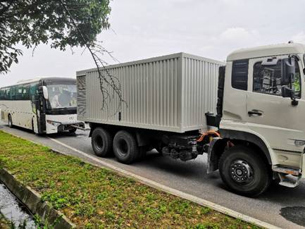 負(fù)荷拖車能夠?qū)崿F(xiàn)在全功率范圍的加載動(dòng)力輸出。在進(jìn)行試驗(yàn)時(shí),負(fù)荷試驗(yàn)系統(tǒng)由負(fù)荷拖車與被試驗(yàn)車輛組成,由被試驗(yàn)車輛牽引前進(jìn),通過(guò)對(duì)被試驗(yàn)車輛實(shí)施精細(xì)調(diào)節(jié)且穩(wěn)定的任意負(fù)荷,來(lái)測(cè)量車輛行駛過(guò)程中各種負(fù)荷的參數(shù)值,例如:車速、發(fā)動(dòng)機(jī)轉(zhuǎn)速、牽引力、滑轉(zhuǎn)率、牽引功率、驅(qū)動(dòng)輪轉(zhuǎn)速、實(shí)際行駛距離、試驗(yàn)運(yùn)行時(shí)間等。